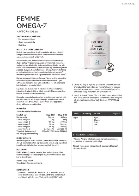 • Femme Omega-7 havtornsolja, 90 kapslar
