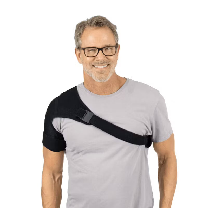 Stabiliserar och positionerar: Sätter axeln i sin naturliga position för att kunna läka på riktigt och minska trycket inom axeln.