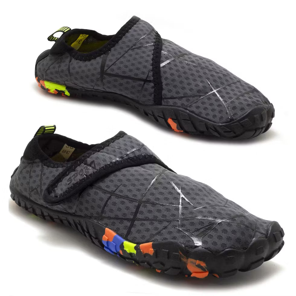 Våra badskor är designade med en kraftig sula som ger både utmärkt grepp och skyddar dina fötter mot vassa föremål. De är perfekta för dig som älskar att bada eller spendera tid på klippor och stränder.