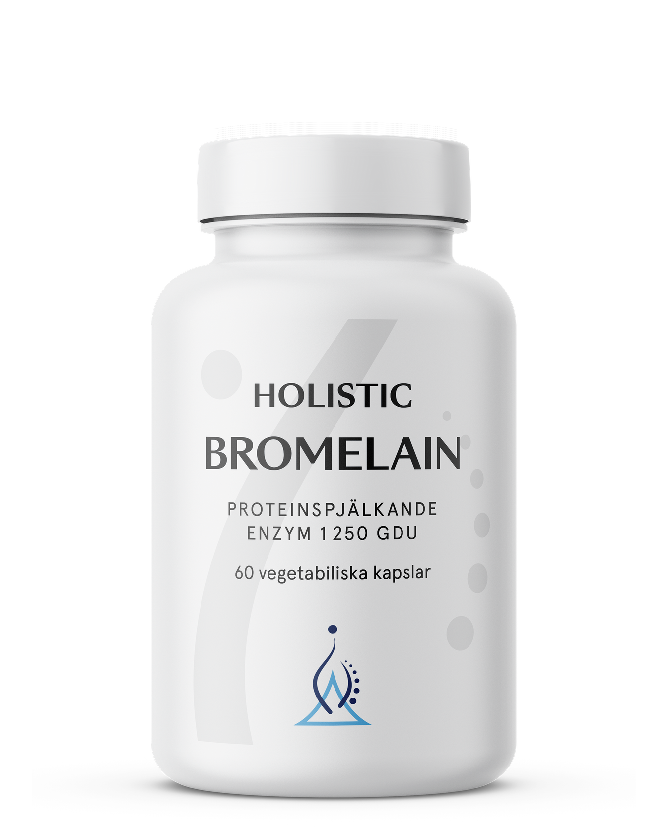Bromelain är en blandning av proteaser (enzymer som bryter ned proteiner) som naturligt förekommer i ananas (Ananas comosus). Holistic Bromelain kommer från stammen på ananasen, som är särskilt rik på ämnet. Bromelain har använts traditionellt i många kulturer för sina olika hälsofrämjande egenskaper.