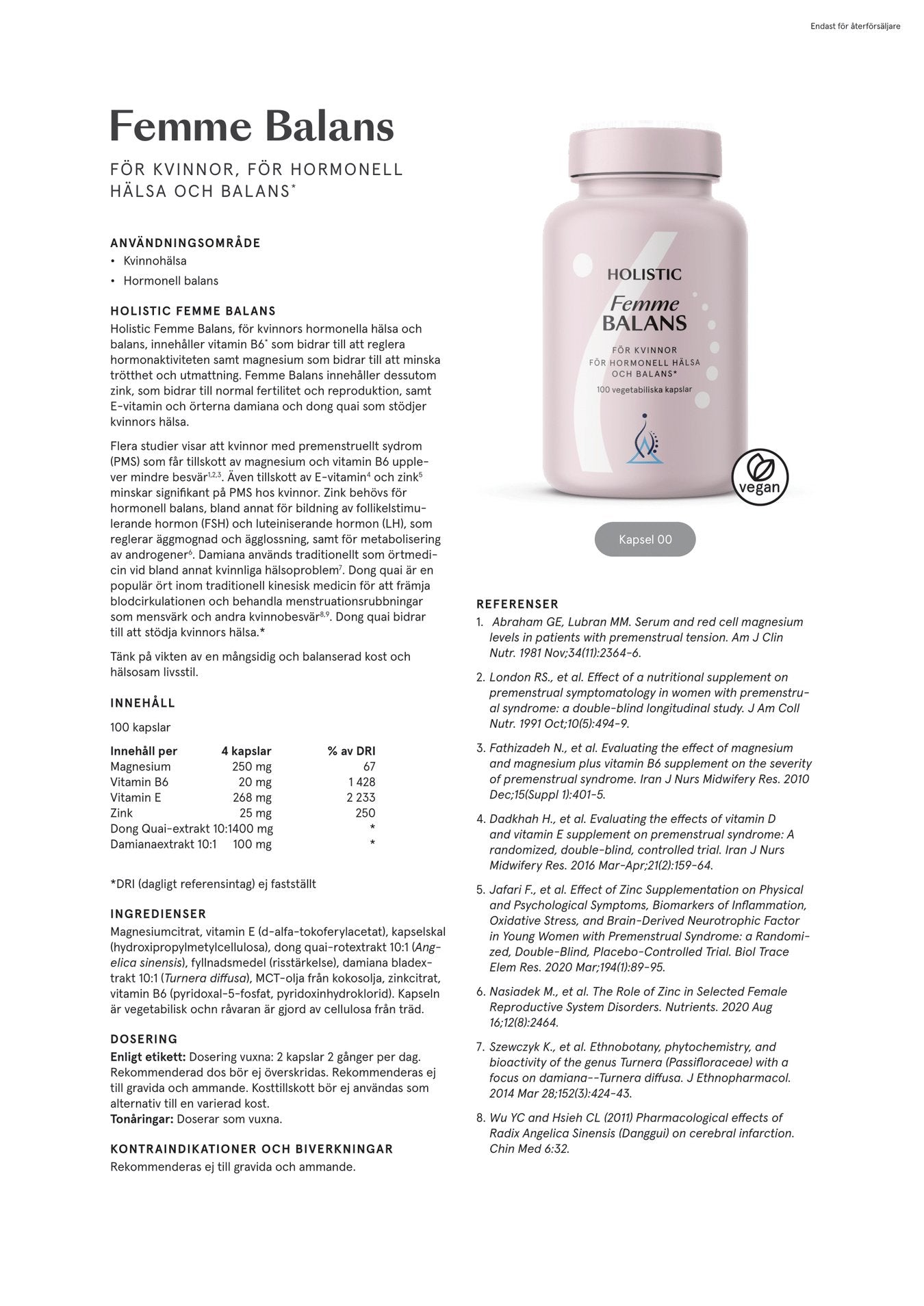 asdFör kvinnans hormoncykel finns det tillskott som balanserar och stöttar upp. Holistics Femme Balans innehåller kapslar med aktiva ingredienser som bidrar till din cykels unika gång.