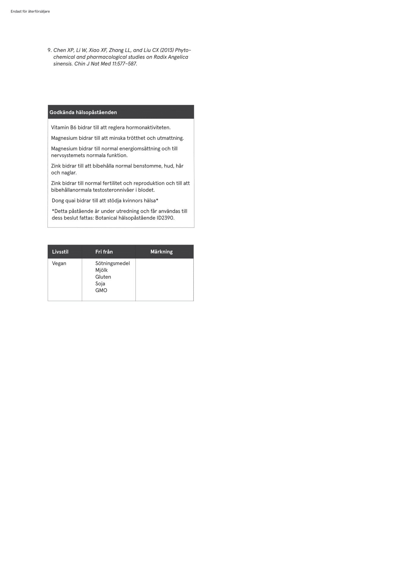 - Damiana och dong quai som stödjer kvinnors hälsa