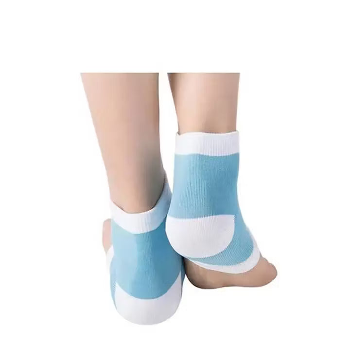 Ett par (2st) mjuka sockor som avlastar dina hälar när du står eller går. Den insydda gel-kudden ger stötdömpning och minskar smärta i hälen. Ger en fuktgivande och mjukgörande bas för att hålla hälen mjuk och len. Hjälper aktivt till att reparera sprucken hud i kombination av återfuktande egenskaper. Finns i en storlek som passar alla fötter. Färg ljusblå.