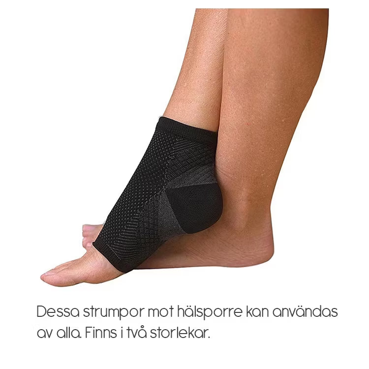 Ett par strumpor mot hälsporre med kompression som passar dig som besväras av hälsporre, svullna fötter eller smärta i häl och fotvalv. Hälsporrestrumpor ökar blodflödet i fötterna, vilket påskyndar läkningsprocessen och ger samtidigt ett bekvämt stöd till fötter och hälar.