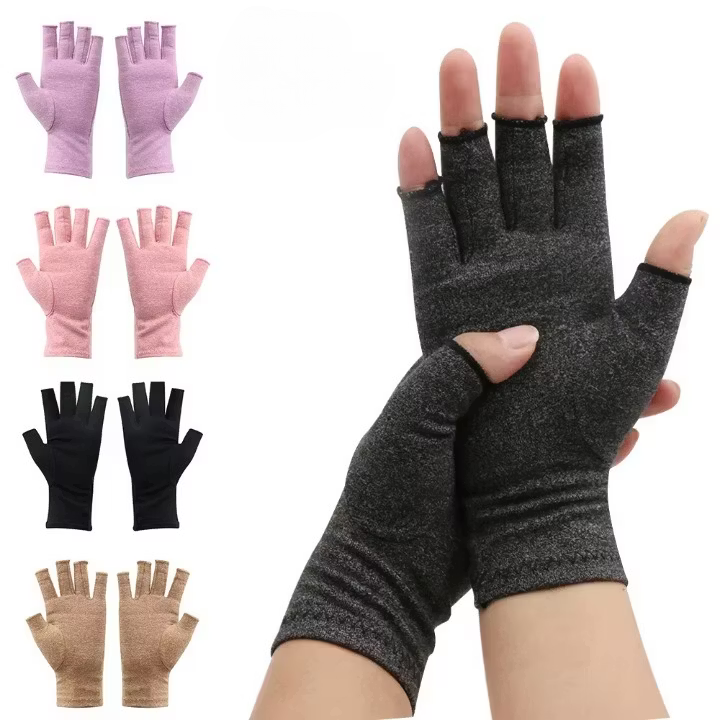Fingerlösa Kompressionshandskar för Smärtlindring och Ökad Komfort – Grå, Svart, Beige, Rosa, Lila