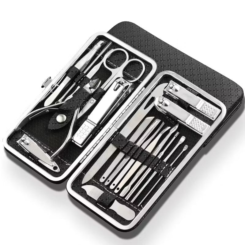 asdVårt 19-verktygsset för manikyr ger dig alla verktyg du behöver för en fullständig nagel- och hudvårdsrutin. Setet innehåller 4 olika nagelklippare, 1 nagelsax, 2 nagelfilar, 1 manikyrkniv och 2 manikyredskap för att ta bort död hud.
