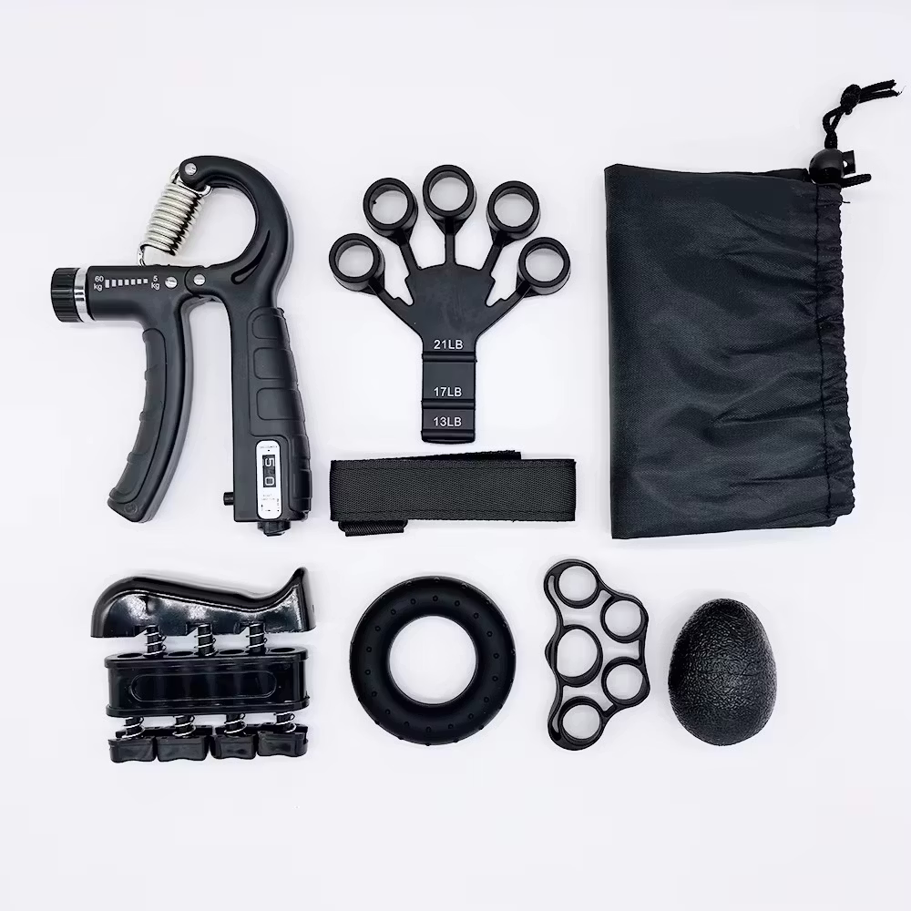 Kitet innehåller flera ergonomiska redskap som tränar upp både handens och fingrarnas muskler, ökar blodcirkulationen och minskar stelhet och smärta. Används av både terapeuter, idrottare och kontorsarbetare som lider av överansträngning eller svagt grepp.