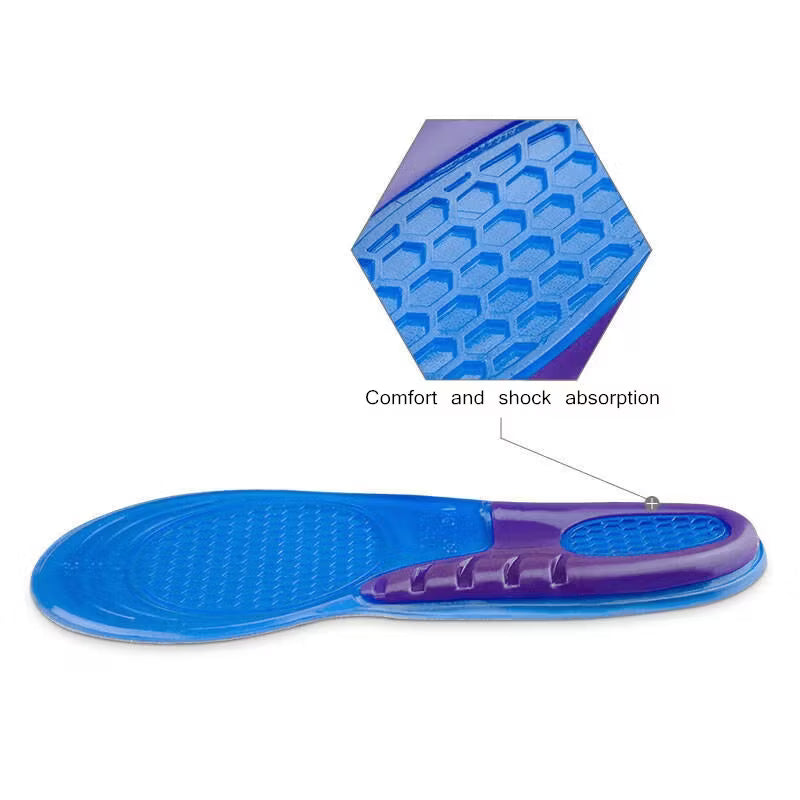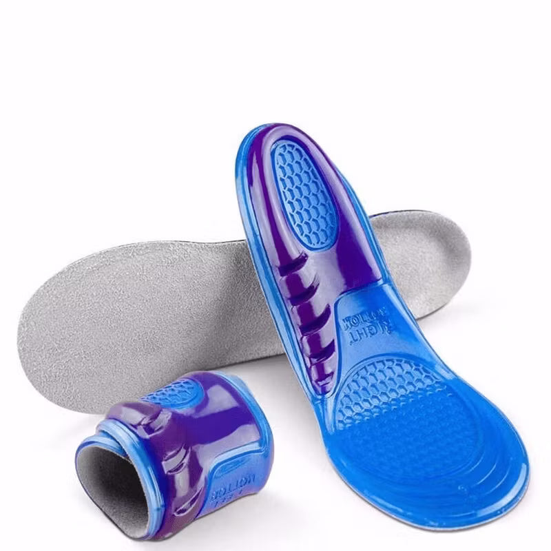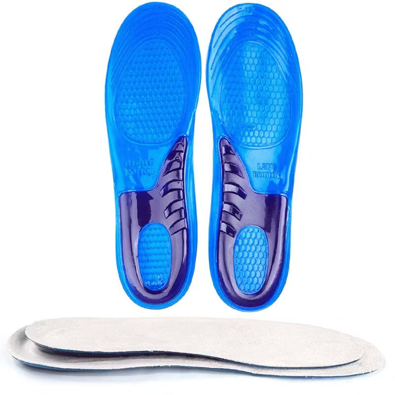 Ett par bekväma skoinlägg gjorda av en dämpande silikongel. Det mjuka materialet absorberar kraften från marken du går på, vilket ger maximal stötdämpning för hela foten. Perfekt för vardags- eller arbetsskor. Den halkfria undersidan gör att inläggen sitter stadigt i dina skor utan att glida runt.