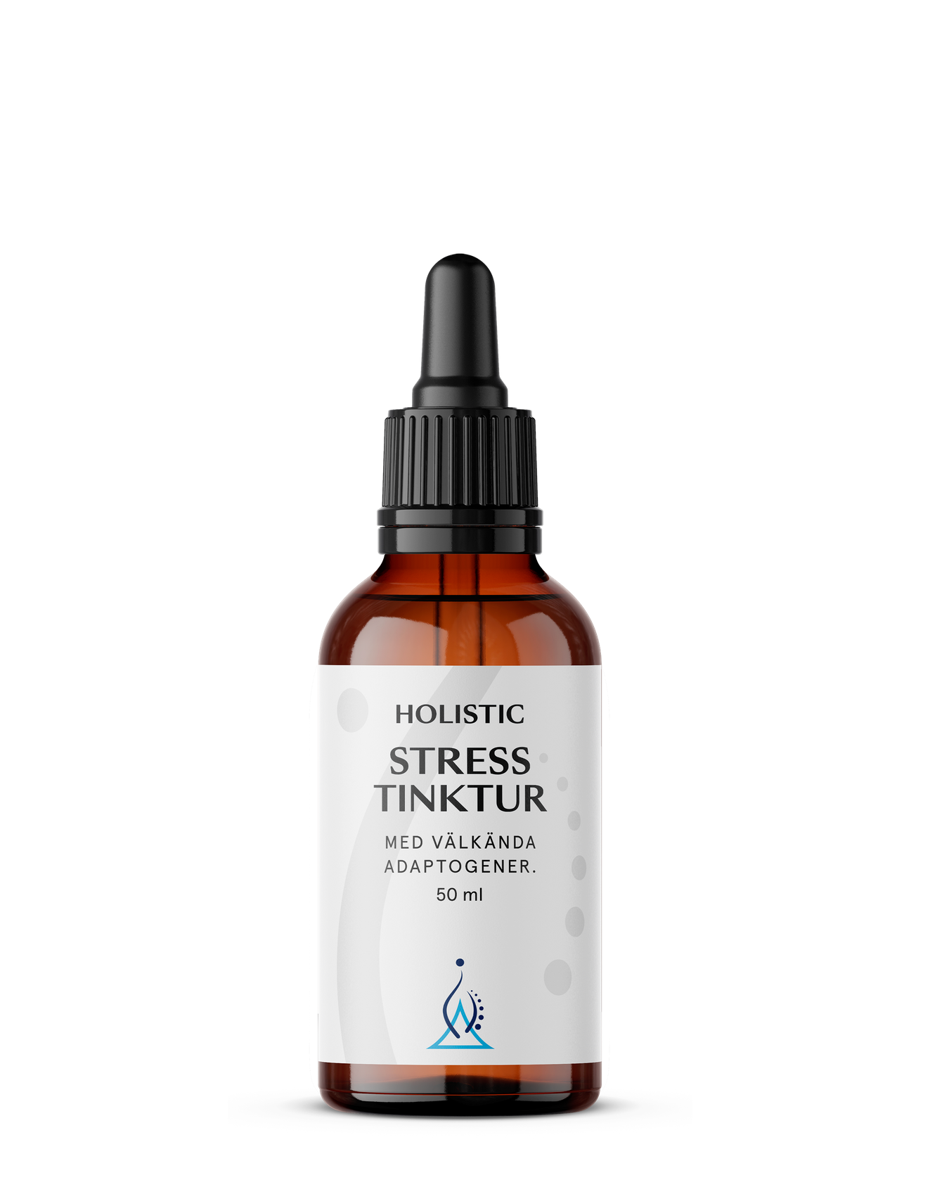 Holistic Stress tinktur innehåller rysk rot, ashwaganda, schisandra och rosenrot som alla har adaptogena egenskaper.