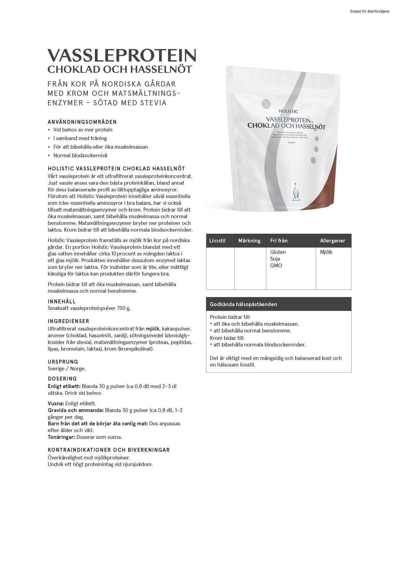 asdHolistic Vassleprotein är tillverkad av instantiserat och ultrafiltrerat vassleproteinkoncentrat, noggrant utvalt från nordiska gårdar.
