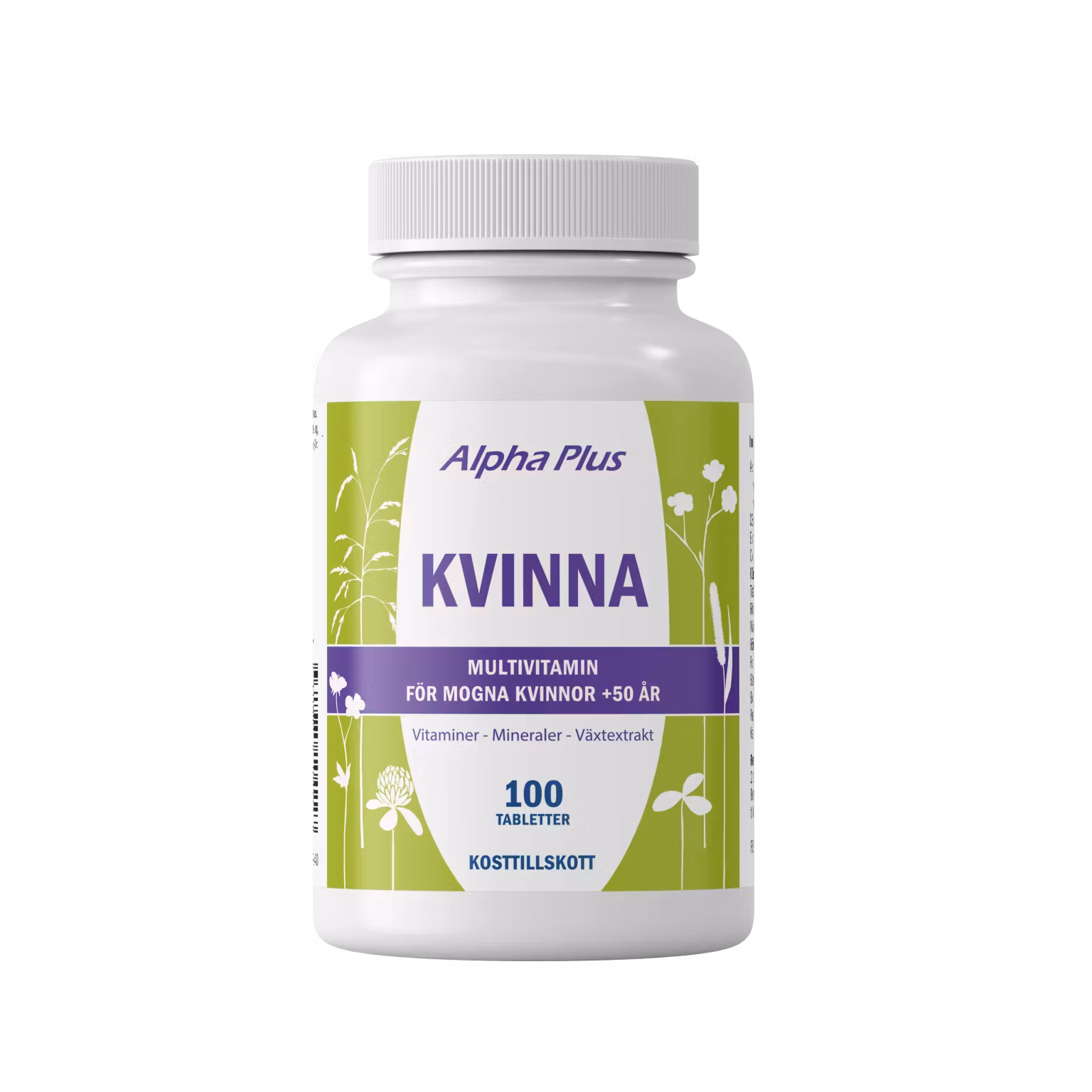 Fyllnadsmedel (mikrokristallin cellulosa, hydroxipropylcellulosa), kalcium (kalciumfosfater), magnesium (magnesiumoxid), stabiliseringsmedel (tvärbunden natriumkarboximetylcellulosa, kalciumfosfater, hydroxipropylmetylcellulosa, kiseldioxid), C-vitamin (L-askorbinsyra), ytbehandlingsmedel (fettsyror, magnesiumsalt av fettsyror, veg. glycerol, karnaubavax), zink (zinkcitrat), E-vitamin (D-alfa-tokoferylacetat), apelsinextrakt 7:1 (Citrus sinensis), tranbärskoncentrat 25:1 (Vaccinium macrocarpon), pantotensyra (D-kalciumpantotenat), inositol, kolin (kolinbitartrat), niacin (nikotinamid), selen (L-selenometionin), järn (järnfumarat), B6-vitamin (pyridoxin-5’-fosfat), bor (natriumborat), tiamin (tiaminhydroklorid), mangan (manganglukonat), koppar (kopparglukonat), riboflavin (B2-vitamin), D3-vitamin (kolekalciferol), klumpförebyggande medel (talk), A-vitamin (betakaroten), K2-vitamin (menakinon-7), A-vitamin (retinylacetat), färgämne (klorofyllinkopparkomplex), jod (kaliumjodid), krom (krompikolinat), folsyra (pteroylmonoglutaminsyra), molybden (natriummolybdat), biotin (D-biotin), B12-vitamin (metylkobalamin).