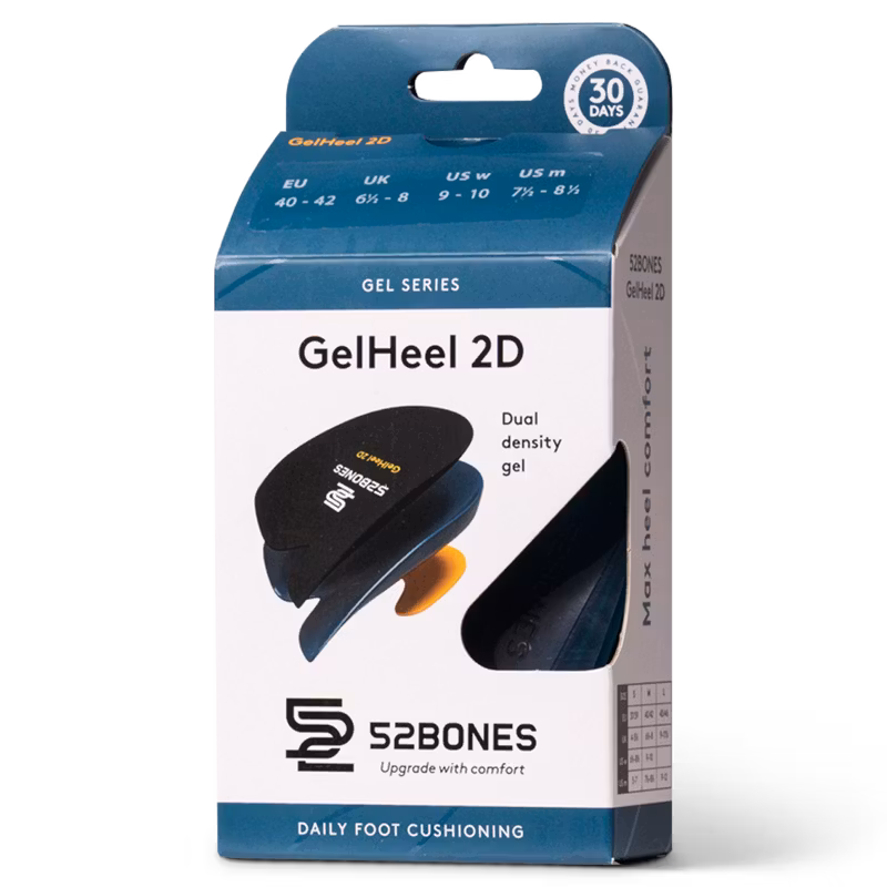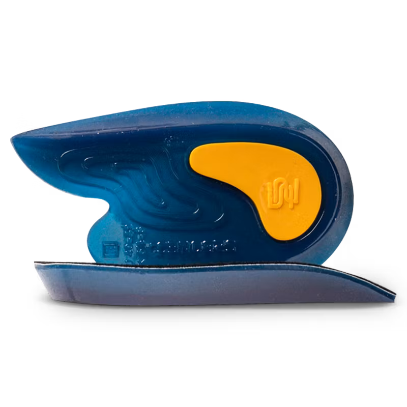 Hälkudde i TPE-gel med två olika densiteter som ger dämpat stöd för hela hälen, även sidorna, genom hälkoppen. Neutraliserar lätt pronation genom stöd för främr