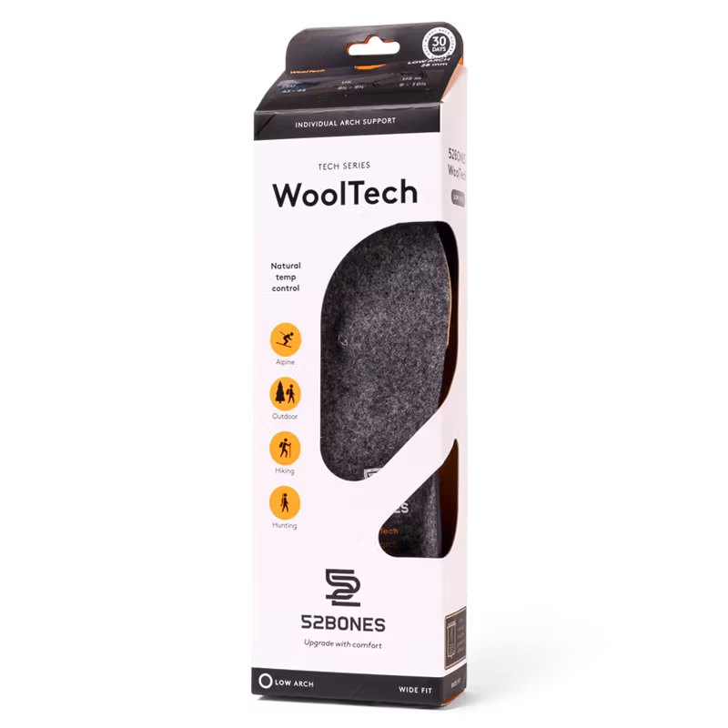 Tekniskt uppbyggd fotbädd i tre hålfotshöjder med en främre pelotte och en djup hälkopp. Ger optimalt stöd till hela foten samt extra dämpning i hälen. Tillverkad i EVA-skum med ett ytskikt i naturligt värmereglerande ull som även isolerar mot kyla från marken. Speciellt anpassad för fysiska aktiviteter utomhus som t.ex. vandring, skidåkning och jakt. Kan handtvättas.