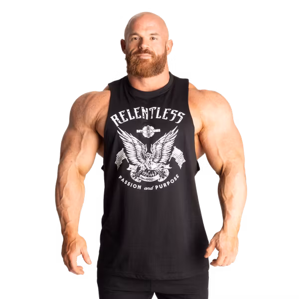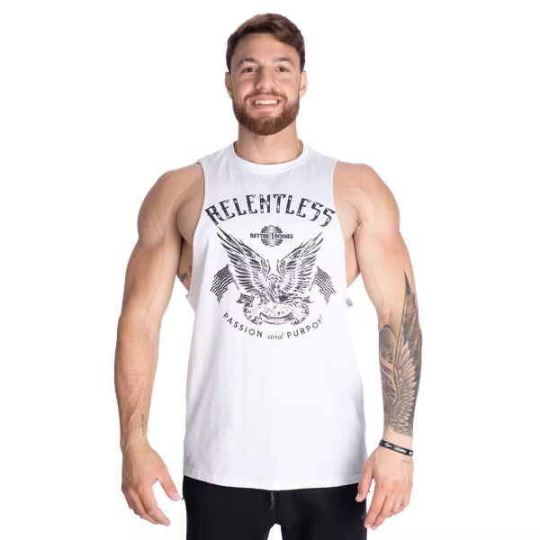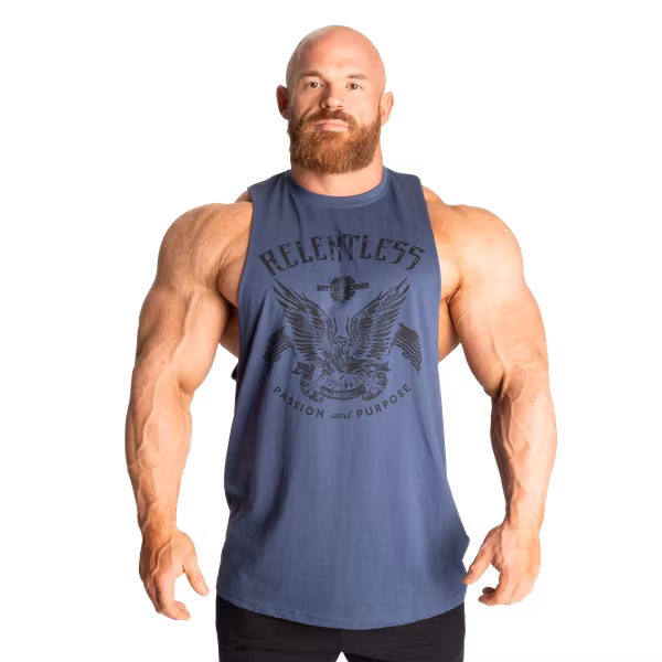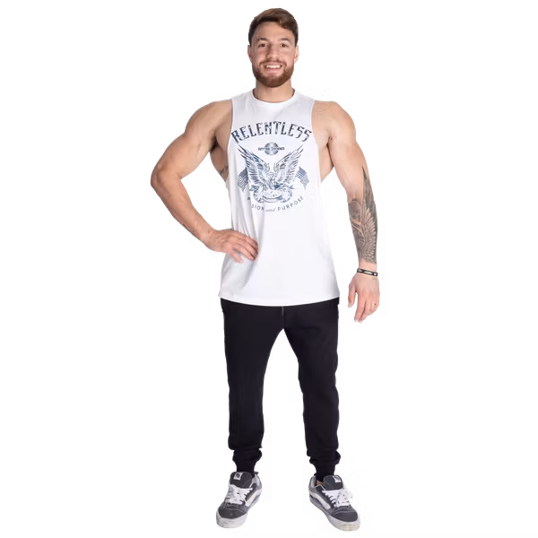 Relentless Cut Out Tank har den klassiska “cut out”-stilen med sänkta ärmhål och råa, ofärdiga kanter.