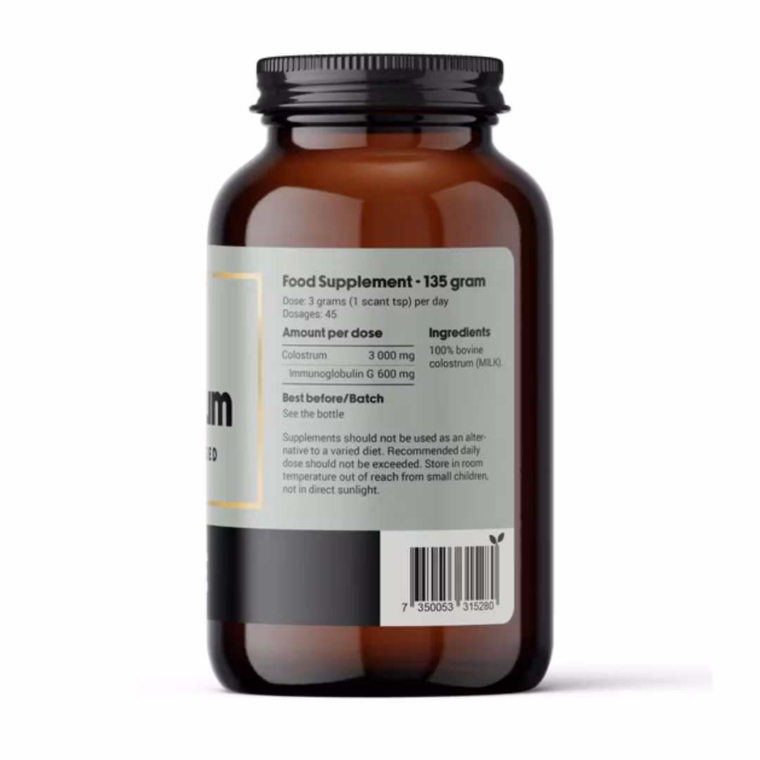 Ingredienser: 100% bovint kolostrum (mjölk).