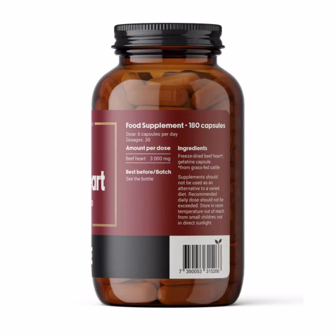 Ingredienser: Frystorkat nöthjärta*, gelatinkapsel.