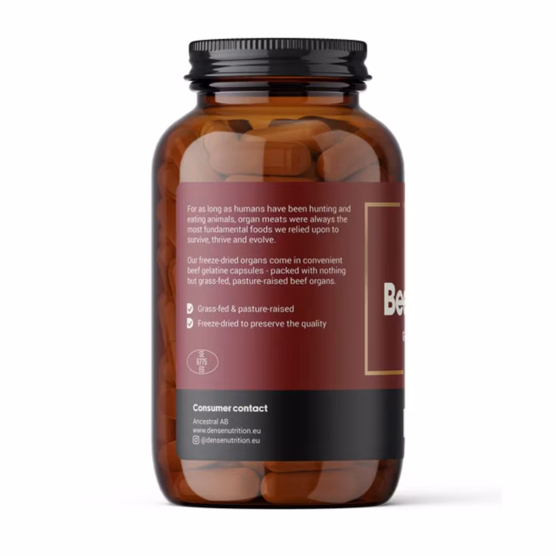 Våra frystorkade biffhjärtakapslar integreras enkelt i dina dagliga rutiner och erbjuder ett bekvämt sätt att öka ditt näringsintag.