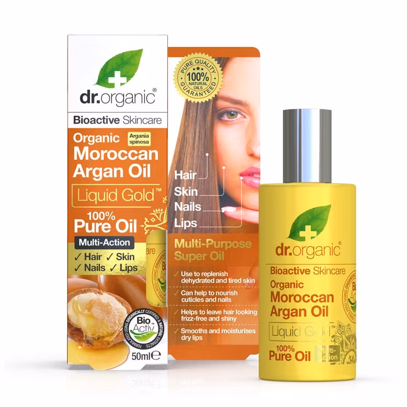 Dr Organic Liquid Gold 100% Pure Argan Oil är en multiverkande "supernäring" för hår, hud, naglar och läppar av kallpressade argannötter. Den här nöten har hållits hemlig av marockanska kvinnor i århundraden och har en unik fuktreparerande, cellförnyande, närande och balanserande verkan.