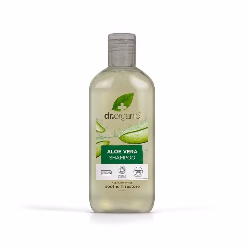 Ett stärkande och skyddande schampoo med ekologisk aloe vera för torrt och normalt hår. Vårdande ingredienser som ekologisk aloe vera, sheasmör och solrosolja.Lämnar håret mjukt, skinande och skyddat från solens strålar. Kombinera med Dr Organics Aloe Vera balsam.