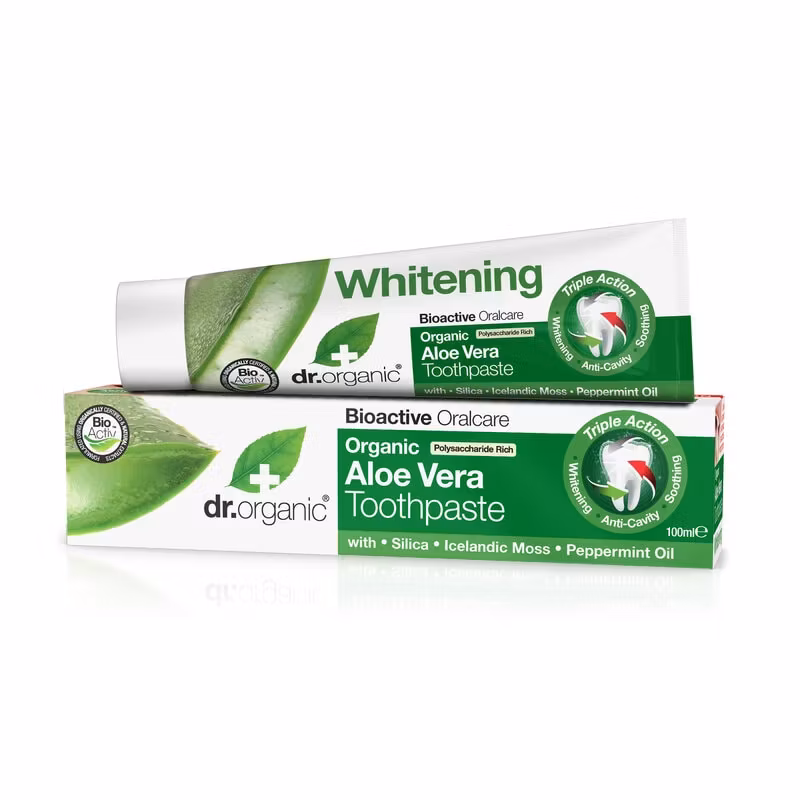 BeskrivningEkologisk aloe vera, kisel, isländsk mossa och kastanj skyddar tänderna och rengör dem. Lämnar en frisk smak av mint.InnehållGlycerin, Aloe barbadens