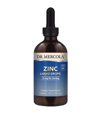Dr. Mercolas flytande zink droppar är ett zinksulfat med tillsats av äppeljuice för smakens skull. Den är fri från citronsyra, alkohol, majs och andra tillsatser. Denna produkt ger dig 15 mg zink per dos i flytande form, perfekt för den som har svårt att ta kapslar och tabletter.