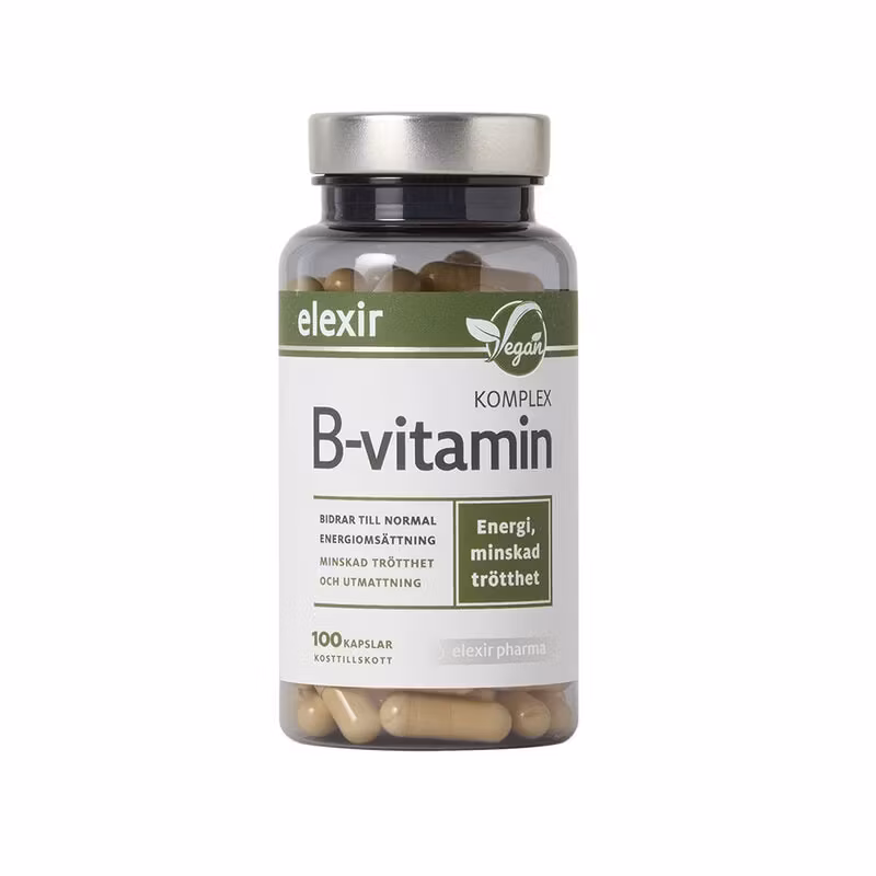 B‑Vitamin Komplex - komplett tillskott med alla B‑vitaminerB‑Vitamin Komplex innehåller alla viktiga B‑vitaminer i balanserade nivåer. Dessa vitaminer är viktig