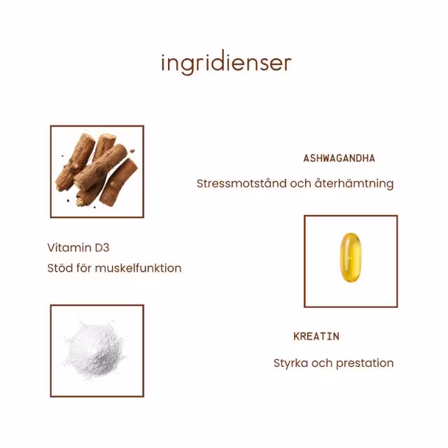 MuscleEtherna är skapad för dig som vill optimera styrka, prestation och återhämtning. Produkten kombinerar kreatin, HMB, ashwagandha och vitamin D3 – en blandn