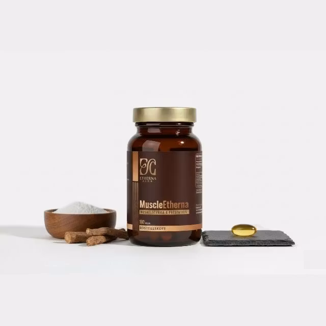 MuscleEtherna är skapad för dig som vill optimera styrka, prestation och återhämtning. Produkten kombinerar kreatin, HMB, ashwagandha och vitamin D3 – en blandning som uppskattas både inom träning och inom longevitykretsar.