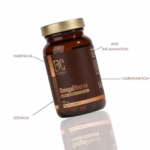 OmegaEtherna contains high-concentrated fish oil from anchovy, rich in the essential omega-3 fatty acids EPA and DHA. Combined with vitamin E, the formula provides broad support for heart, brain, and cellular protection.