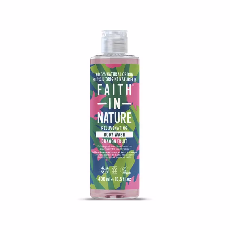 Faith in Nature Duschgel Drakfrukt är framtagen för att ge huden en fräsch och fruktig start på dagen. Innehåller näringsrik drakfruktsolja som är naturligt rik på antioxidanter och stödjer hudens hälsa. Kompletterad med ekologiska extrakt från havre, fläder och lindblom som lugnar och återfuktar huden.
