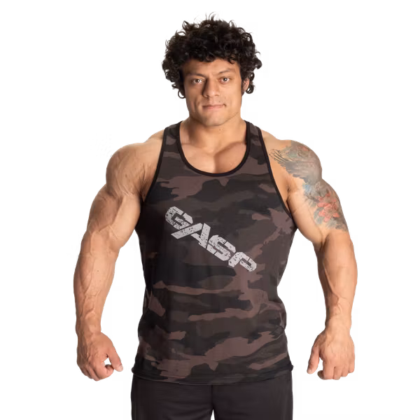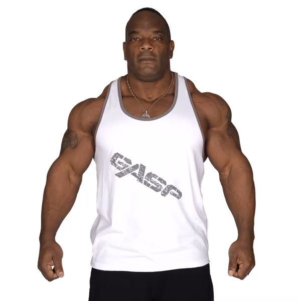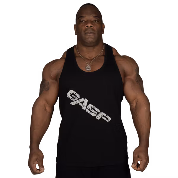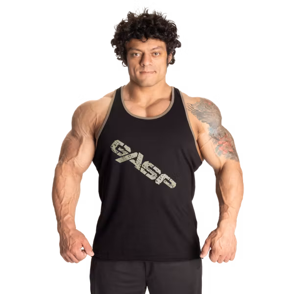 Klassisk lös T-rygg byggd för hardcore bodybuildingträning. Vintage T-Back är byggd för lyftare som bär klassisk bodybuildingutrustning. Slitstarkt bomullstyg ger komfort och tålighet med tidlös GASP-attityd.