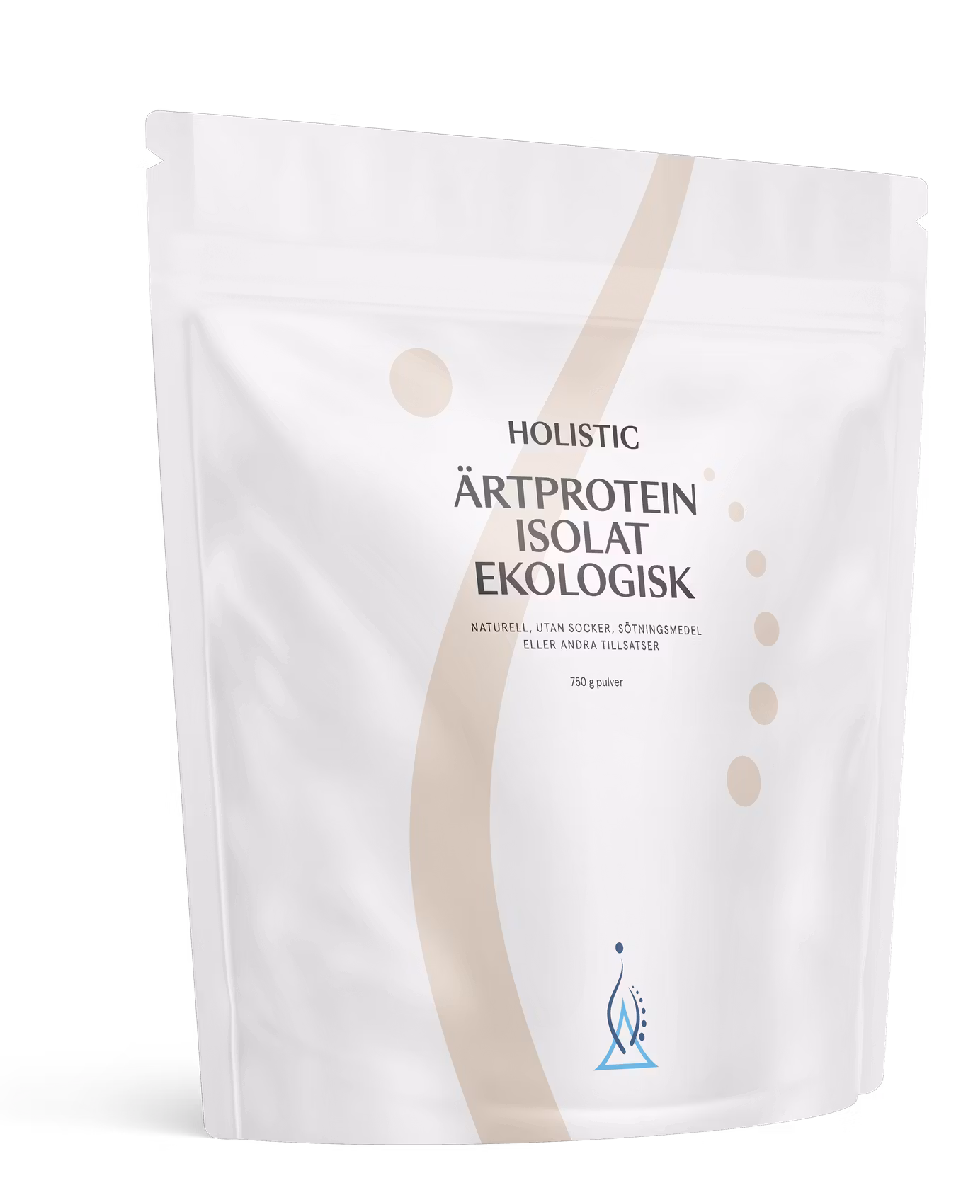 Holistic Ärtprotein är ett proteinisolat från gula ärtor, med en komplett aminosyraprofil och hög proteinhalt. Perfekt för dig som är känslig mot soja, gluten eller mjölkprodukter.