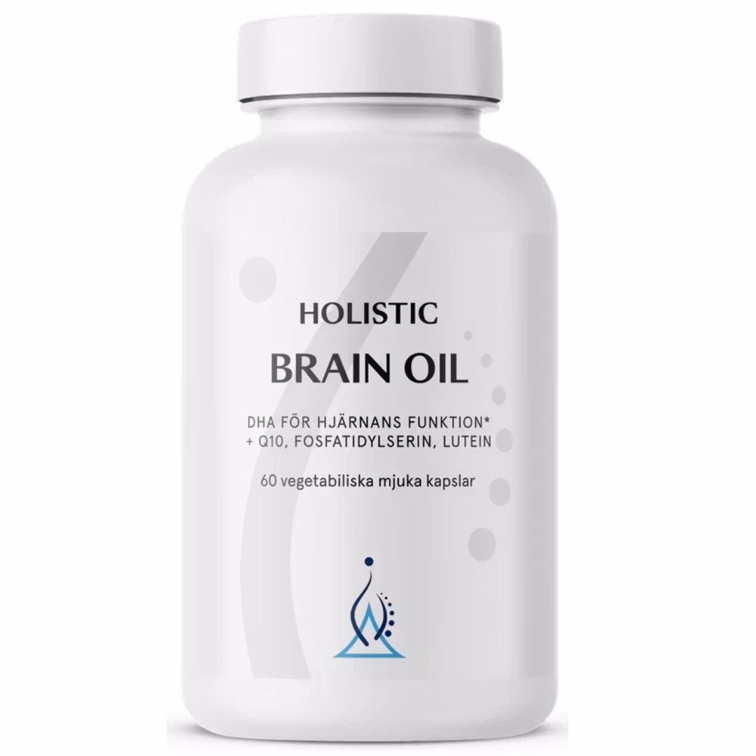 Hjärnan består till hela 60 % av fett i torrvikt och en stor del av detta fett utgörs av omega-3-fettsyror, där DHA (dokosahexaensyra) är den mest framträdande. DHA är särskilt koncentrerat i hjärnans cellmembran och spelar en avgörande roll för nervcellernas struktur, funktion och kommunikation. Holistic Brain Oil är utvecklad med just detta i åtanke. Produkten kombinerar DHA med funktionella fettlösliga näringsämnen som riktar sig till hjärnans unika behov, för dig som vill vårda ditt kognitiva välmående, minne och nervsystem på djupet.