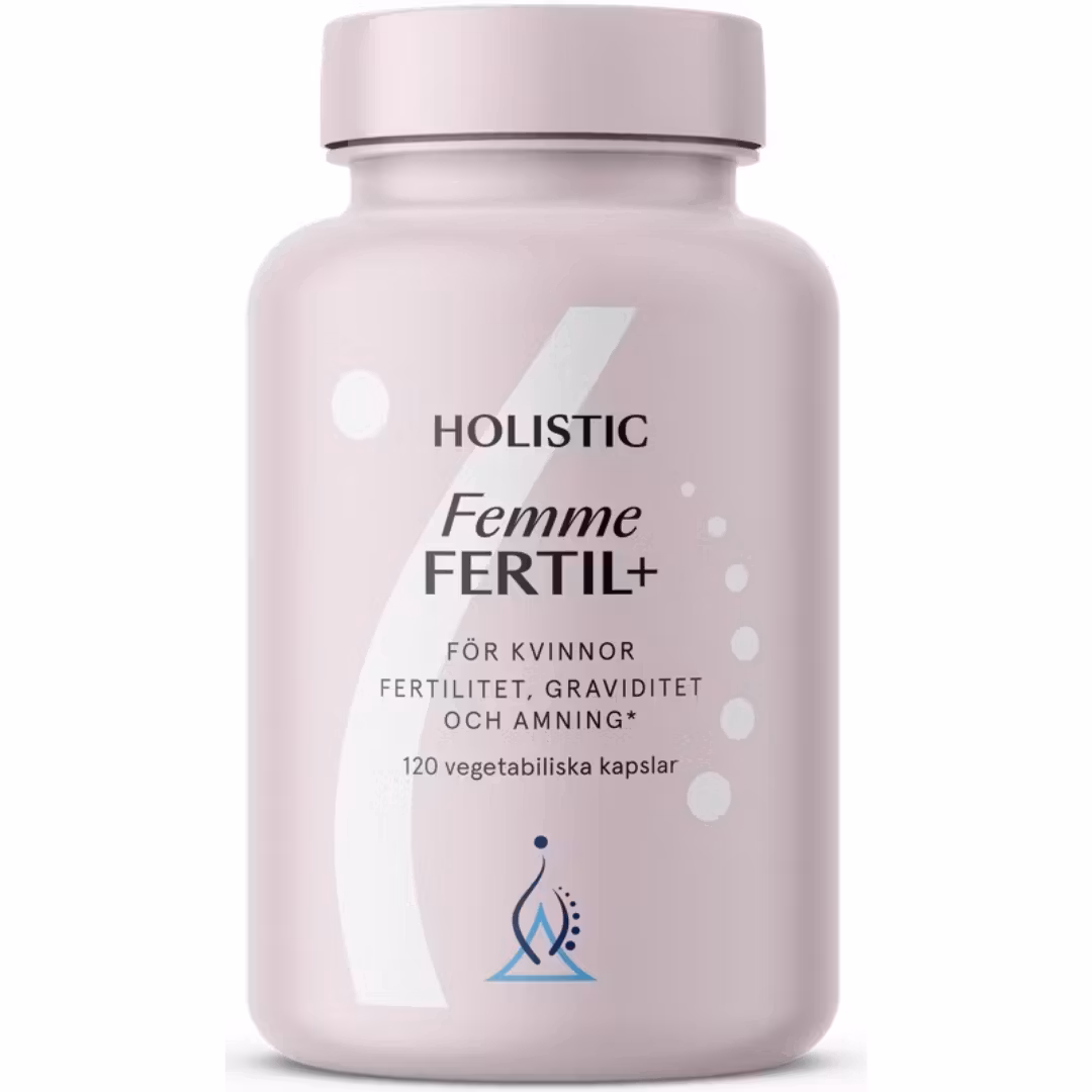 Främja din fertilitet och stöd din graviditet med Femme Fertil+. Komplettera gärna med Holistic Omega-3 algolja. Fettsyran DHA bidrar till att bibehålla normal hjärnfunktion och normal synförmåga. Den gynnsamma effekten uppnås vid ett dagligt intag av 250 mg DHA.