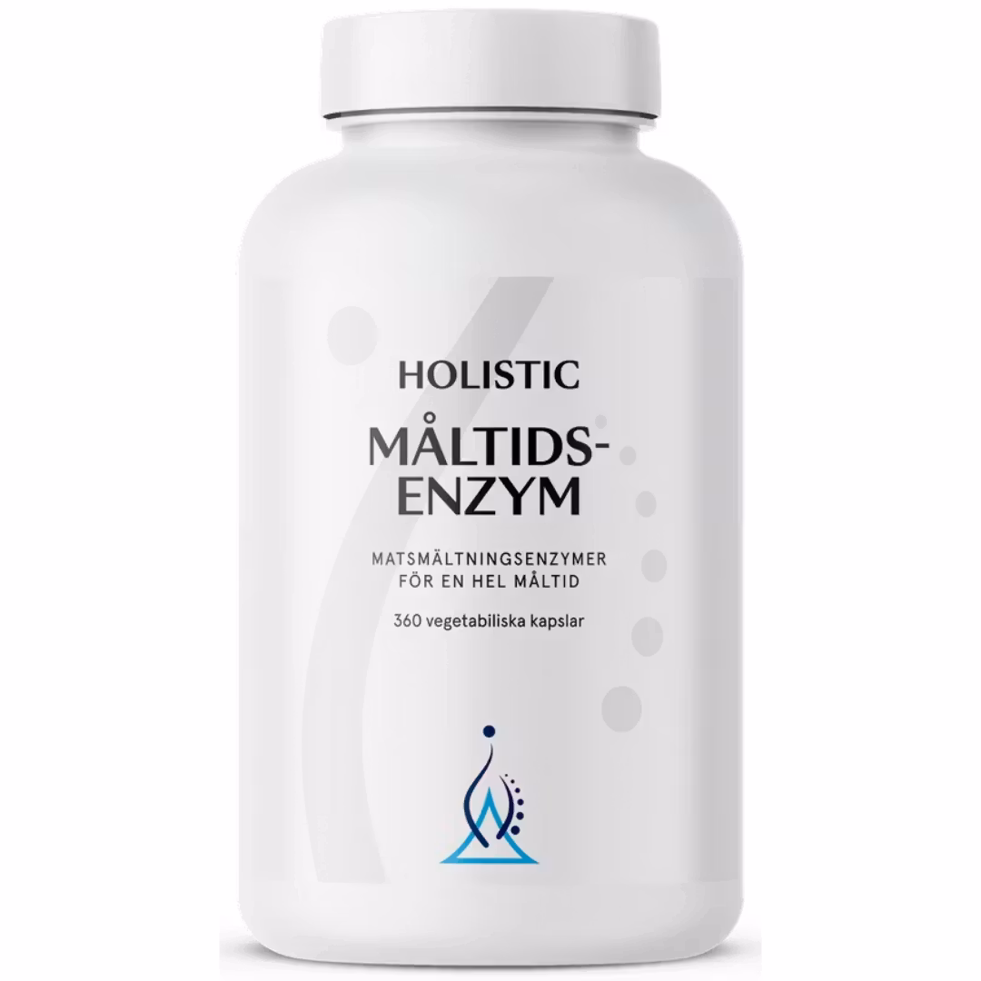 Holistic Måltidsenzym innehåller vegetabiliska matsmältningsenzymer som tas i samband med måltider. Stress är en vanlig orsak till att magen säger ifrån, för när du stressar reagerar din kropp genom att nedprioritera till exempel matsmältningen och kroppens egen tillverkning av matsmältningsenzymer, något som kan ge dig uppblåst, orolig mage. I sådana perioder kan det vara värdefullt att tillsätta extra matsmältningsenzymer. Enzymerna stödjer matsmältningen, bryter ner beståndsdelarna i livsmedel och hjälper till att öka näringsupptaget.