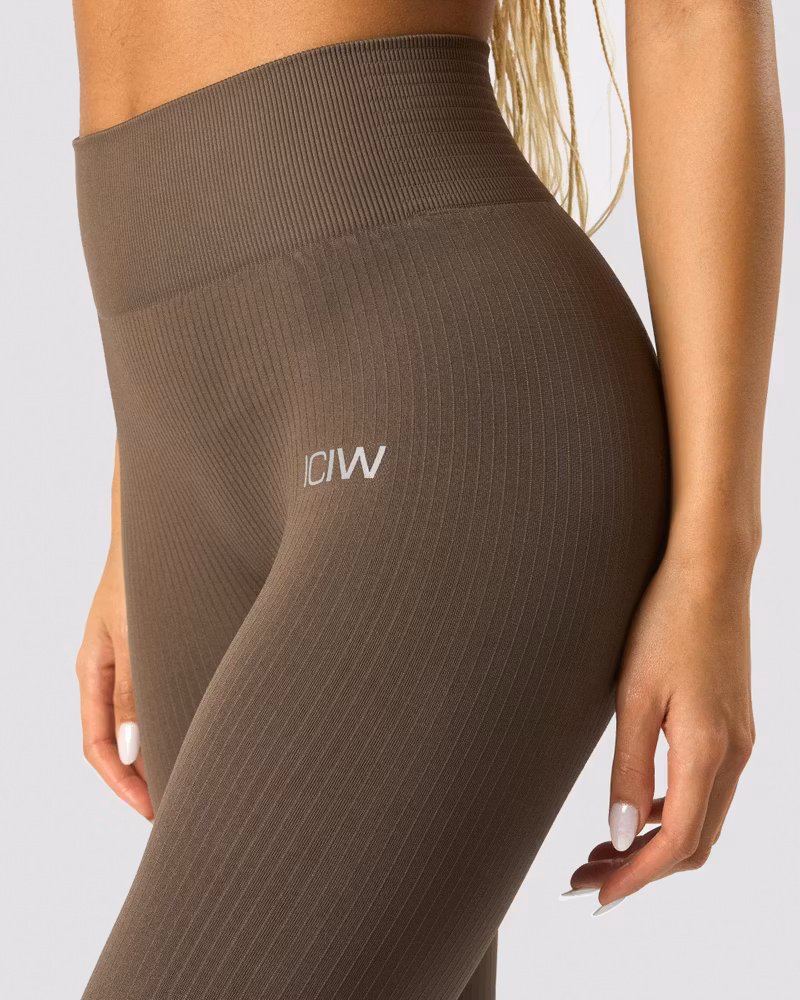 Träningstights i ribbat seamless-material. Hög midja. Fullängd.