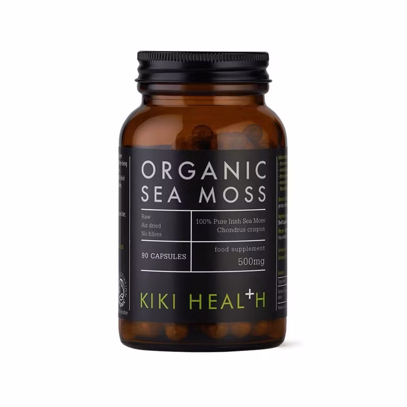 KIKI Health - Sea Moss Organic erbjuder ekologiskt odlad havsmossa av högsta kvalitet, hämtad från Atlanten utanför Irlands kust. Denna produkt består av hela karragenblad som bearbetats skonsamt för att bevara dess naturliga näringsämnen. Havsmossan är lufttorkad vid låga temperaturer och förpackad som fint pulver i veganska kapslar, vilket gör den enkel att inkludera i din dagliga rutin.