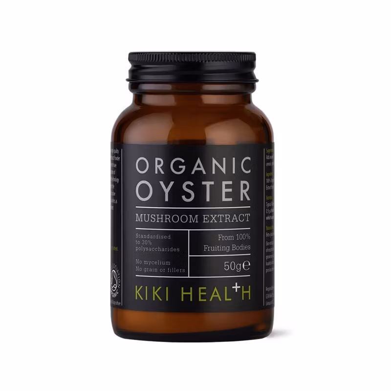 KIKI Health Organic Oyster Extract är ett högkoncentrerat ekologiskt svampextrakt, framställt uteslutande från fruktkropparna – utan mycel eller fyllnadsmedel. Svampen odlas på trärikt substrat, vilket säkerställer en naturlig & koncentrerad produkt.