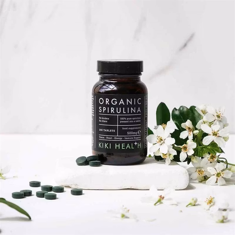 KIKI Health Premium Spirulina är ett naturligt kosttillskott som innehåller 100% rent spirulinapulver, komprimerat till tabletter utan tillsatser. Spirulina är en näringsrik alg som är en naturlig källa till flera viktiga vitaminer. Den innehåller vitamin A, som bidrar till immunsystemets normala funktion och bibehåller normal synförmåga, samt vitamin B12, som bidrar till att minska trötthet och utmattning. Dessutom innehåller den vitamin K, som bidrar till normal blodkoagulation och bibehåller normal benstomme.