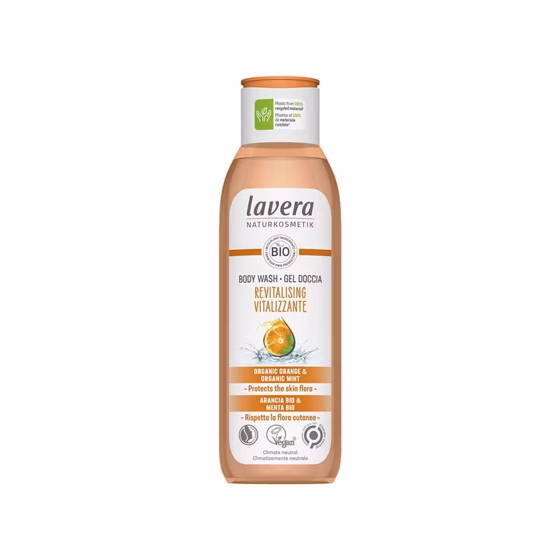 Body Wash Revitalising med apelsin & mynta från LaveraLavera Body Wash Revitalising är en duschkräm som kombinerar fräsch doft av apelsin och mynta med en m
