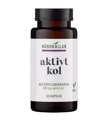Närokällan Aktivt kol och äppelcidervinäger tillsammans för stöd i samband med måltider.Produkten innehåller inga onödiga tillsatser.Vår veganska kapsel kombine