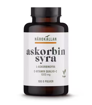 Närokällan L-askorbinsyra får nog räknas som världens finaste C-vitamin i ren form. Det är den enda askorbinsyran som tillverkas i Europa. Övriga tillverkas i Kina. Den löser upp sig nästan omedelbart i vatten. Det är första gången vi anser att kvalitén på ren askorbinsyra är tillräckligt hög för att säljas.