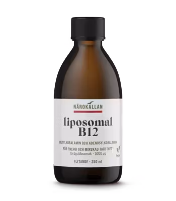 Vitamin B12 är ett viktigt vitamin för människokroppen och är viktigt för energimetabolismen och nervsystemet. Detta är en liposomal form för optimalt upptag. Närokällan B12 innehåller den högkvalitativa aktiva formen metylkobalamin.