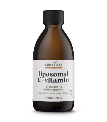 1000 mg liposomal C-vitamin med havtorn och apelsinsmakNärokällan Liposomal C-vitamin innehåller 1000 mg lättupptaglig C-vitamin, med endast rosmarinextrakt som