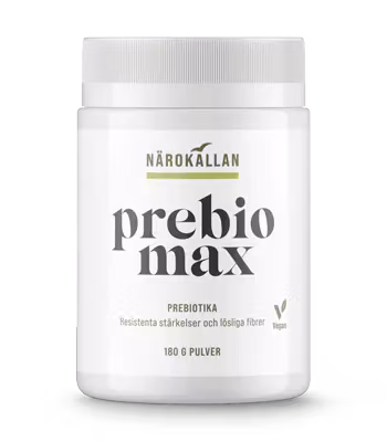 Prebiotika betyder före liv. Prebiotika är komplexa kolhydrater som klarar sig genom matsmältningssystemet utan att brytas ner. PrebioMax innehåller både resistent stärkelse och lösliga fibrer.