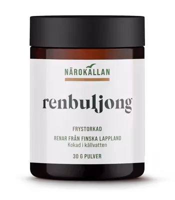 Frystorkad benbuljong (källvatten, ben och benmärg av finländsk ren, ekologisk äppelcidervinäger).