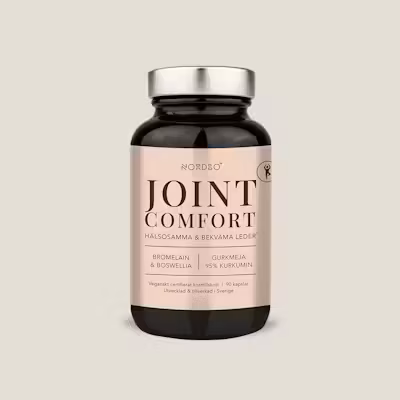 NORDBO Joint Comfort innehåller ett välbeprövat trippelkomplex av bromelain, gurkmeja och boswellia.Gurkmejan består av hela 95% kurkuminoider, d.v.s. de aktiva