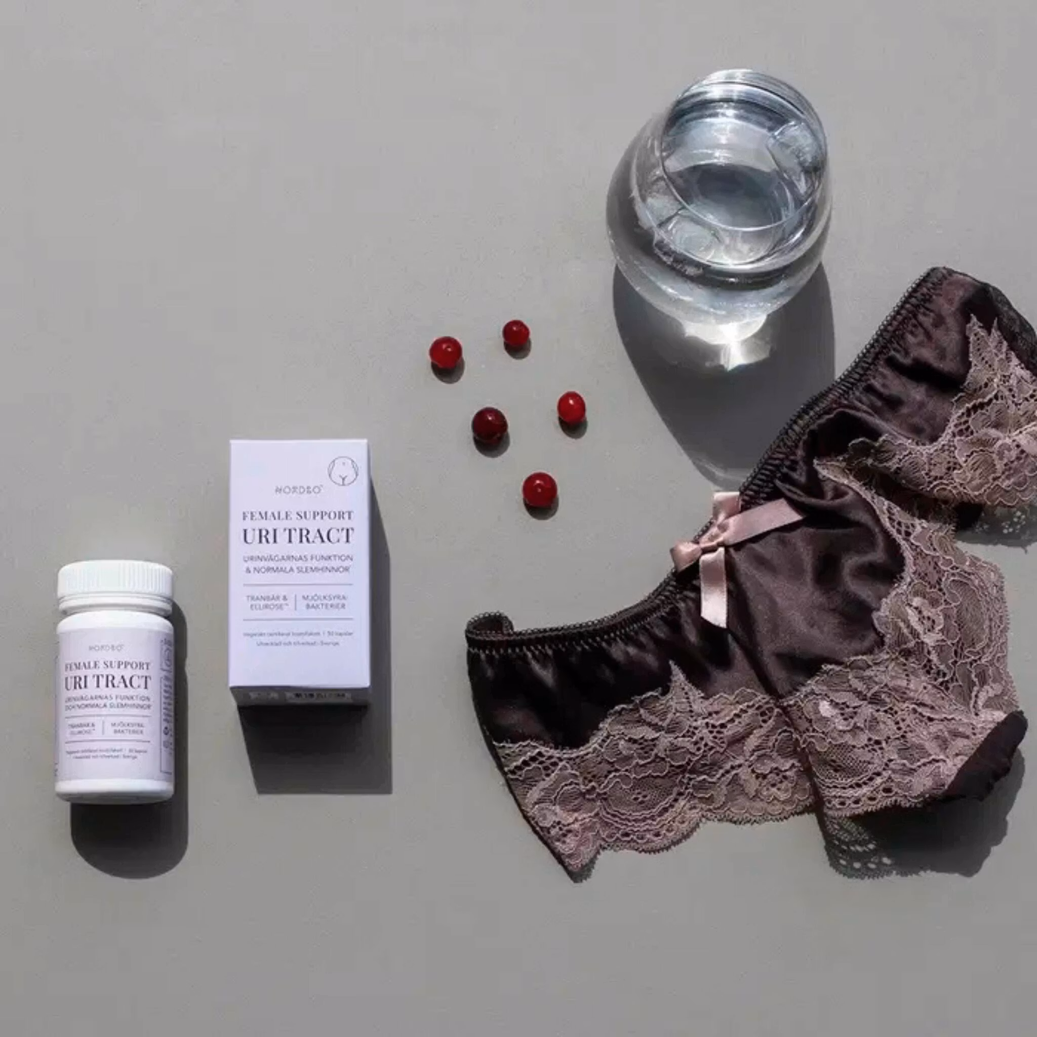 NORDBO Female Support UriTract är framtagen för urinvägarnas normala funktion. Med 7 aktiva ingredienser, bl.a. mjölksyrabakterier, hibiskus, tranbär och D-mannos.