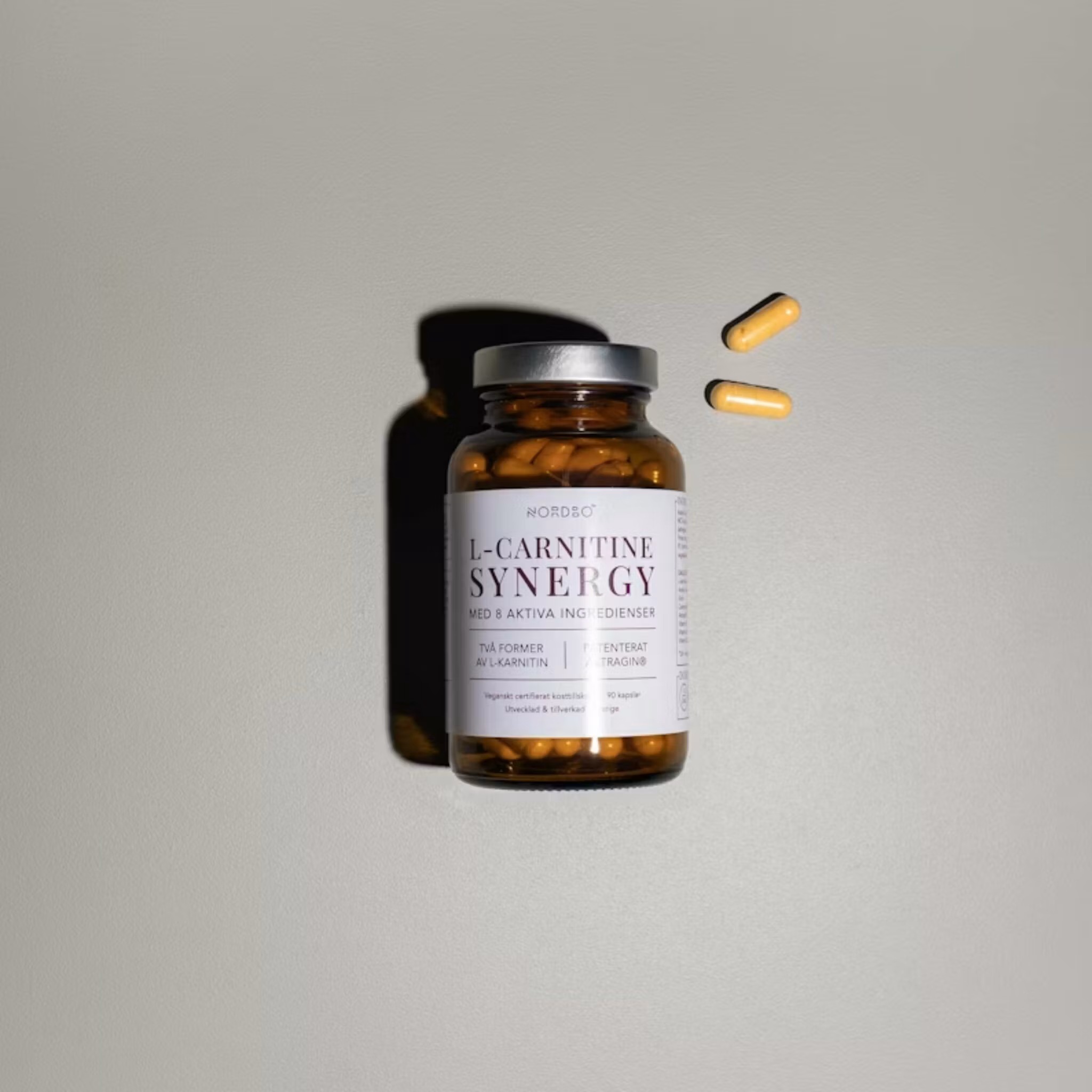 NORDBO L-Carnitine Synergy är ett synergistiskt komplex med två former av L-karnitin (Acetyl-L-karnitin och L-karnitin-L-tartrat), kombinerat med kolin, coenzym Q10, Astragin® samt vitamin B1, B6 och B12.