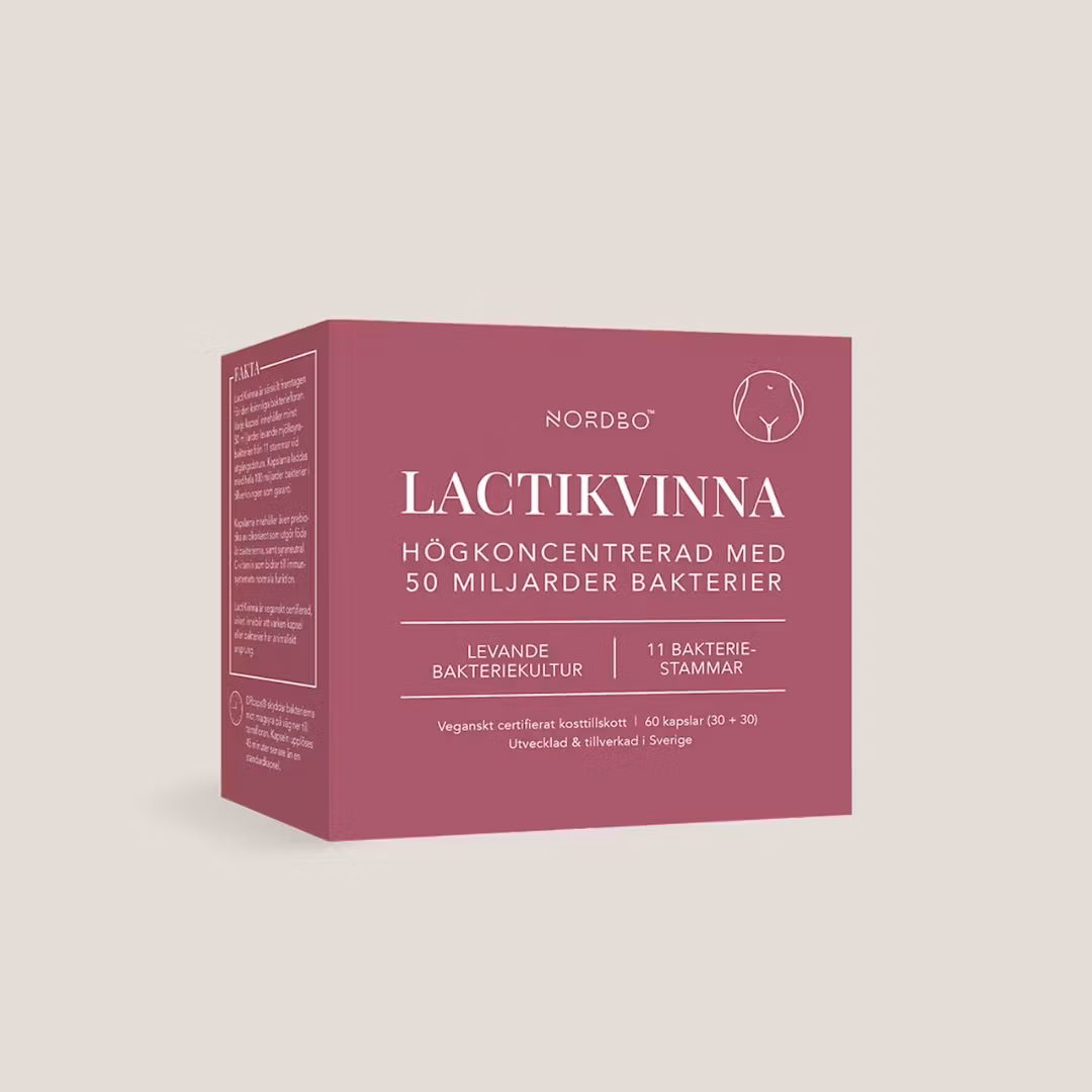 NORDBO LactiKvinna innehåller garanterade 50 miljarder mjölksyrabakterier fördelat på 11 stammar, per kapsel. Produkten är särskilt framtagen för kvinnor och in